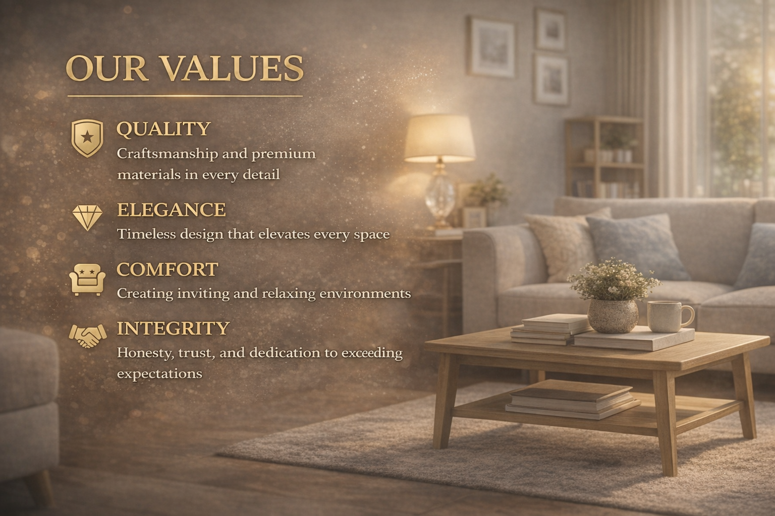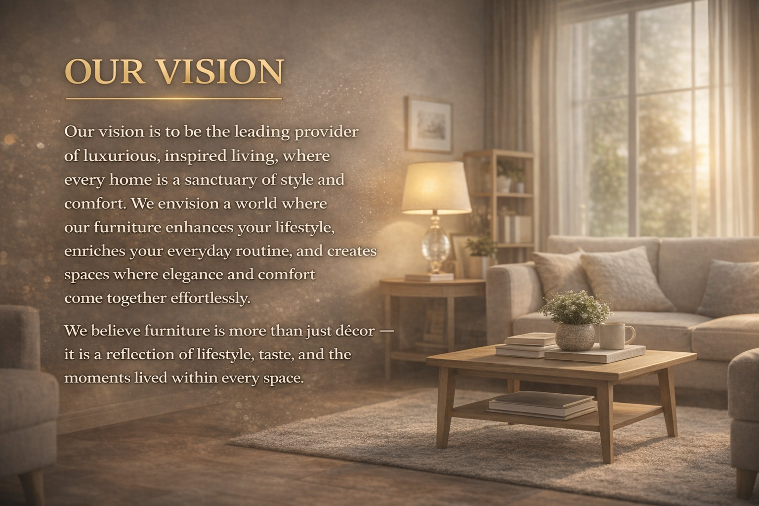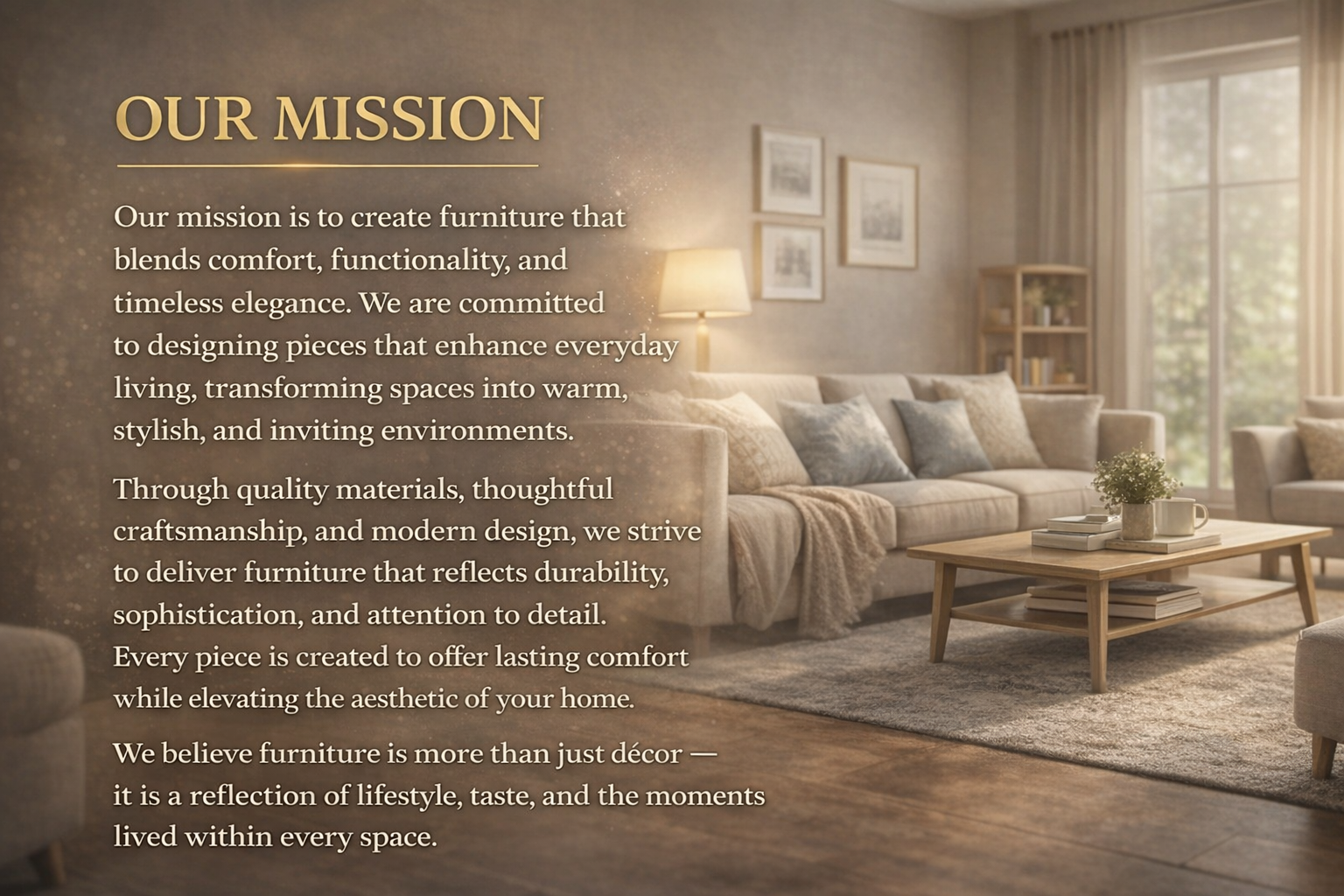 Our mission is to elevate everyday moments through thoughtfully designed products that meet the highest standards of quality and taste. Whether it’s comfort, luxury, or reliability, we are dedicated to exceeding expectations and delivering value that lasts.