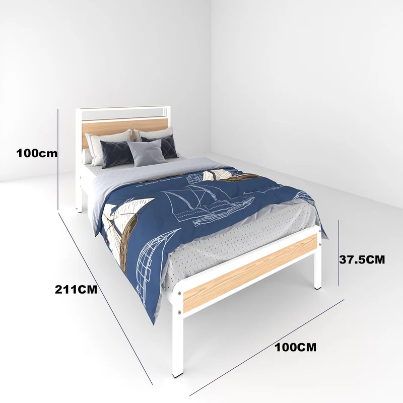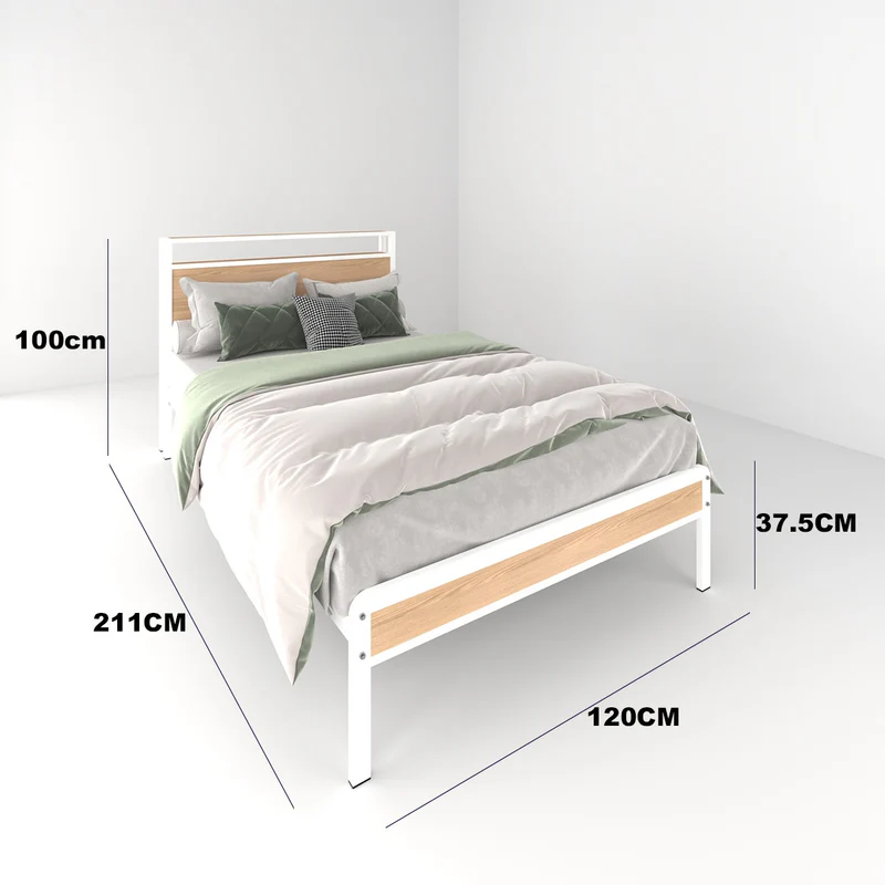 سرير فردي فورجينا – هيكل معدني، خشب موسكي – 120 سم – أبيض