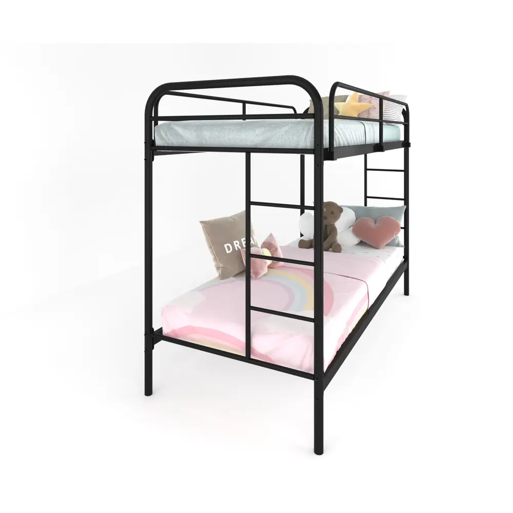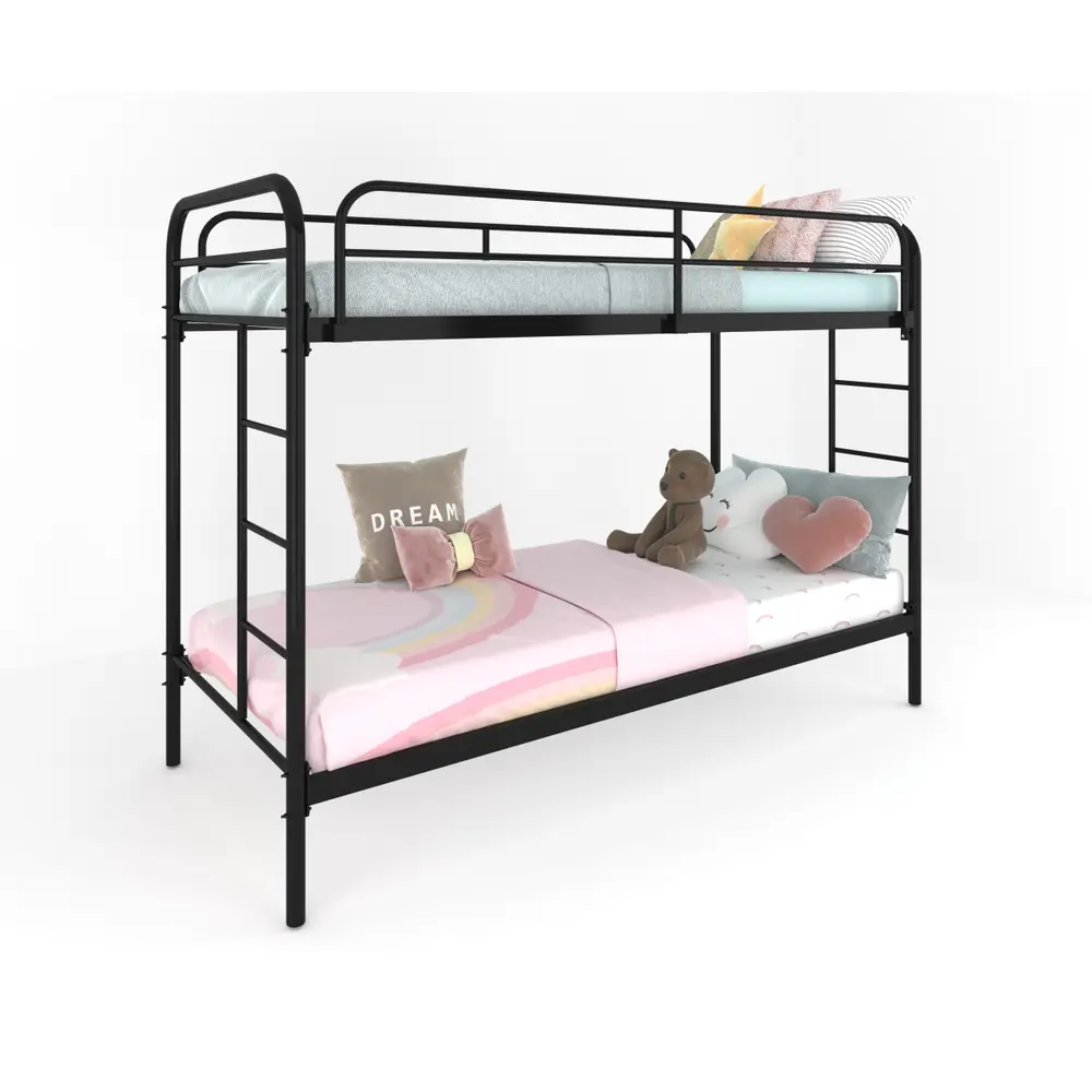 Metal Bunk Bed with Ladder, 150 × 91 × 203 cm – Black